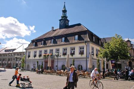 Auf dem Marktplatz in Emmendingen befindet sich die Hauptbühne des Chorfests, sowie der Info-Stand.